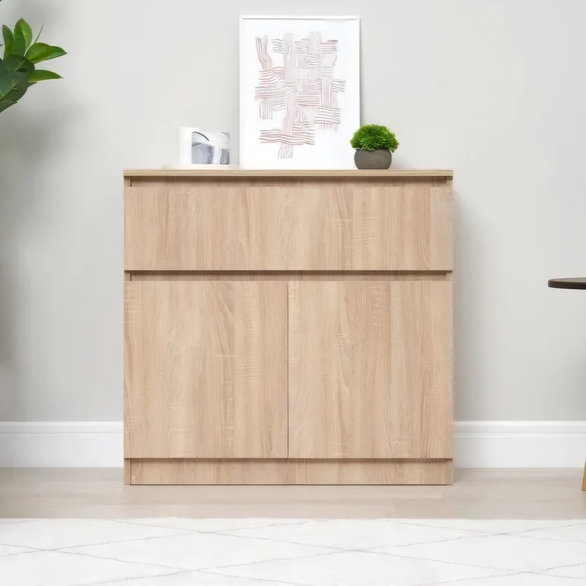 Купить Комод для одежды и вещей с ящиком и дверцами Челси, 1 ящик 2 дверцы, 80×76×33 см, Дуб сонома с доставкой по всей России.