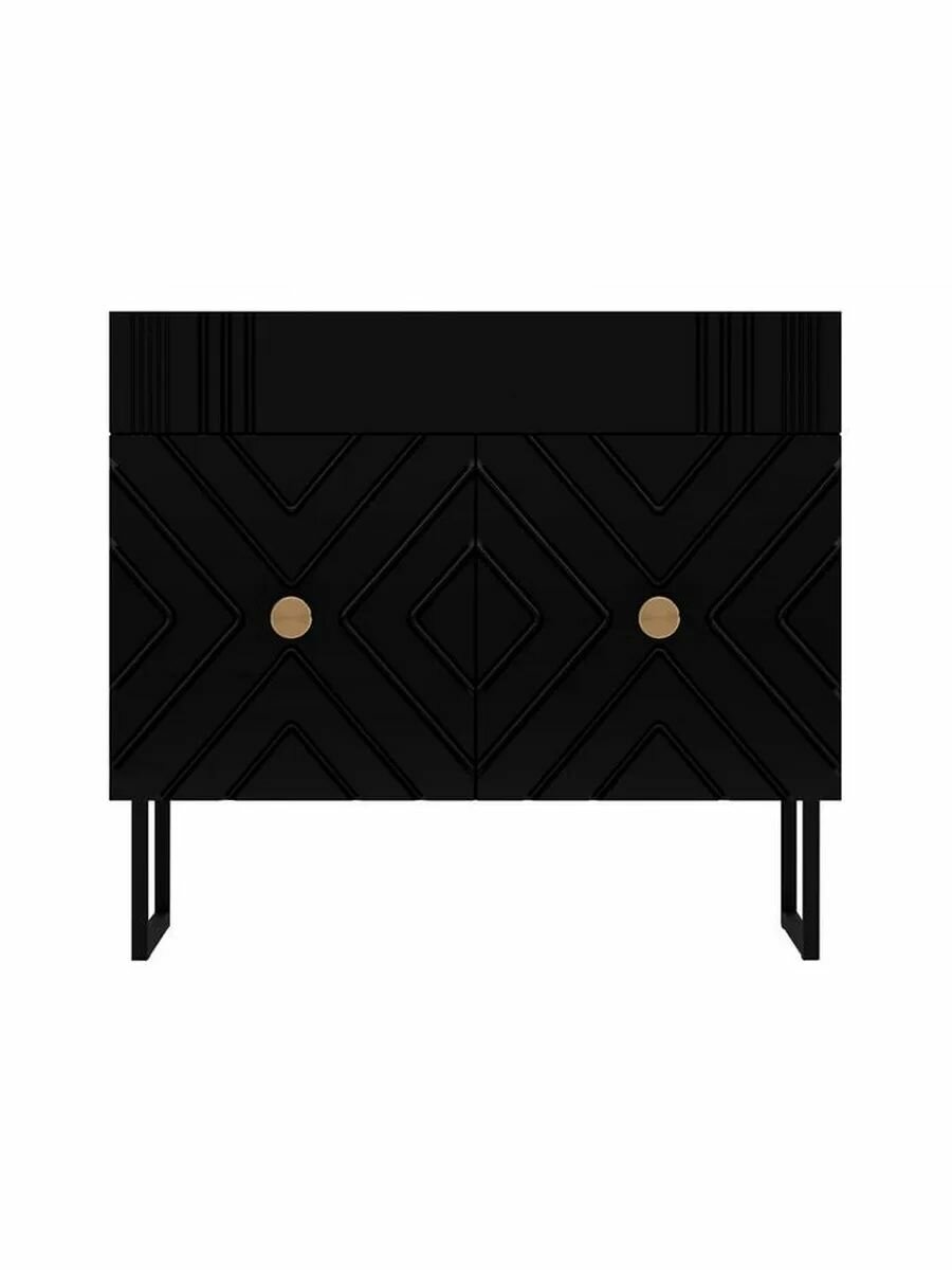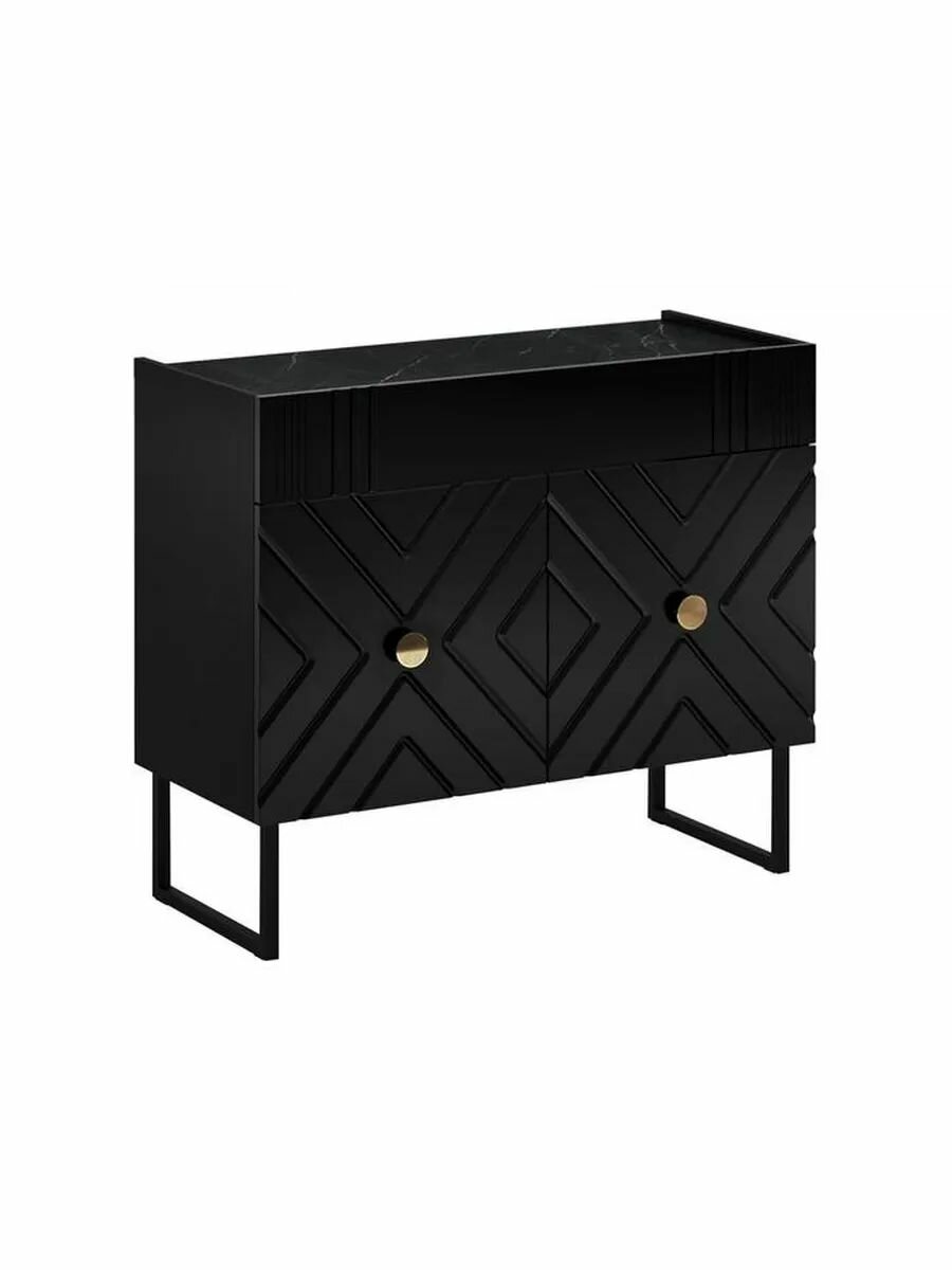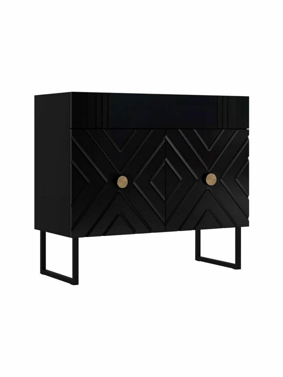Комод для одежды Марсель с ящиком, полками, 90.4х41.7х80 см, Черный глянец/ Креатель / Черный: сравнение цен, характеристики, фото, актуальное наличие и цены.