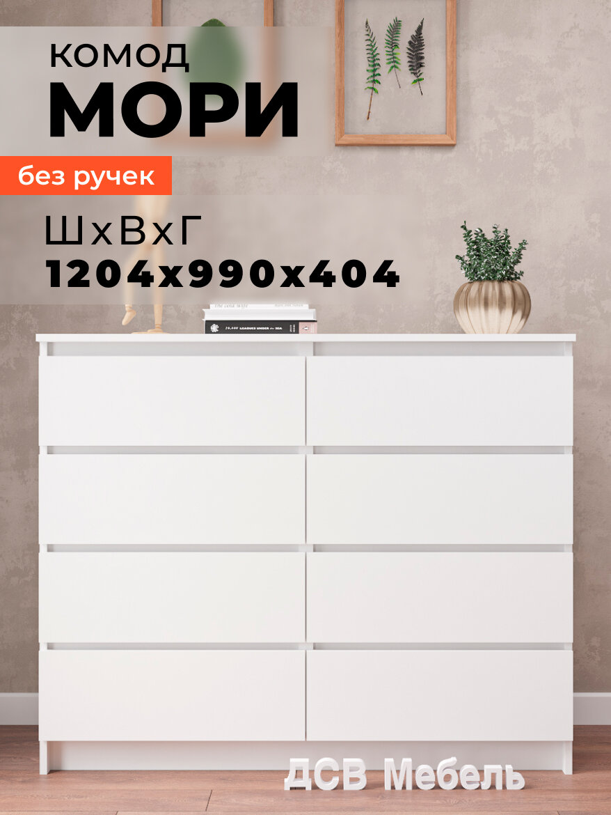 Купить Комод для одежды Мори МК 1200.8, 8 ящиков, ЛДСП белый матовый, без лицевой фурнитуры с доставкой по всей России. Комод для одежды Мори МК 1200.8, 8 ящиков, ЛДСП белый матовый, без лицевой фурнитуры: сравнение цен, характеристики, фото, актуальное наличие и цены.
