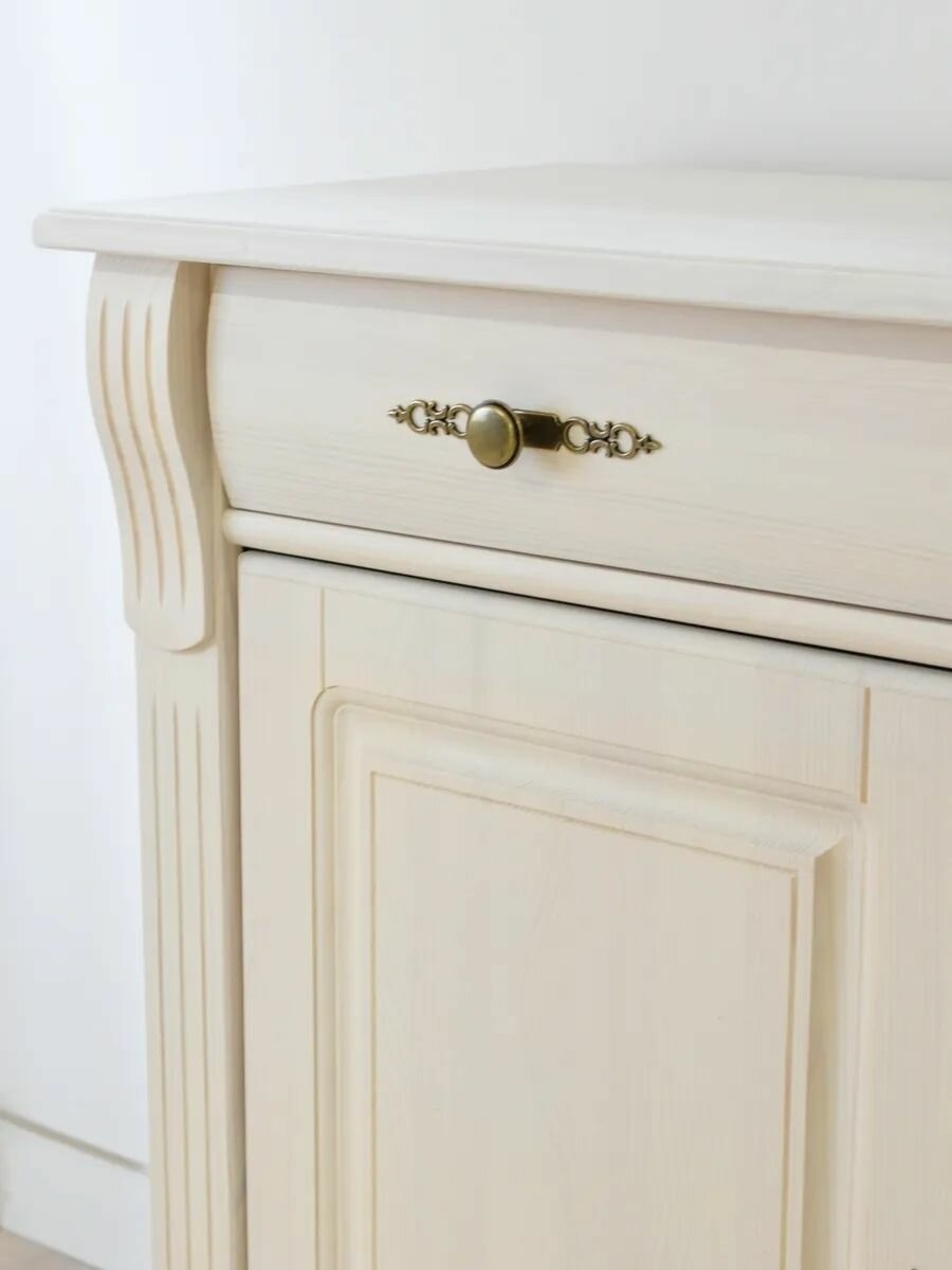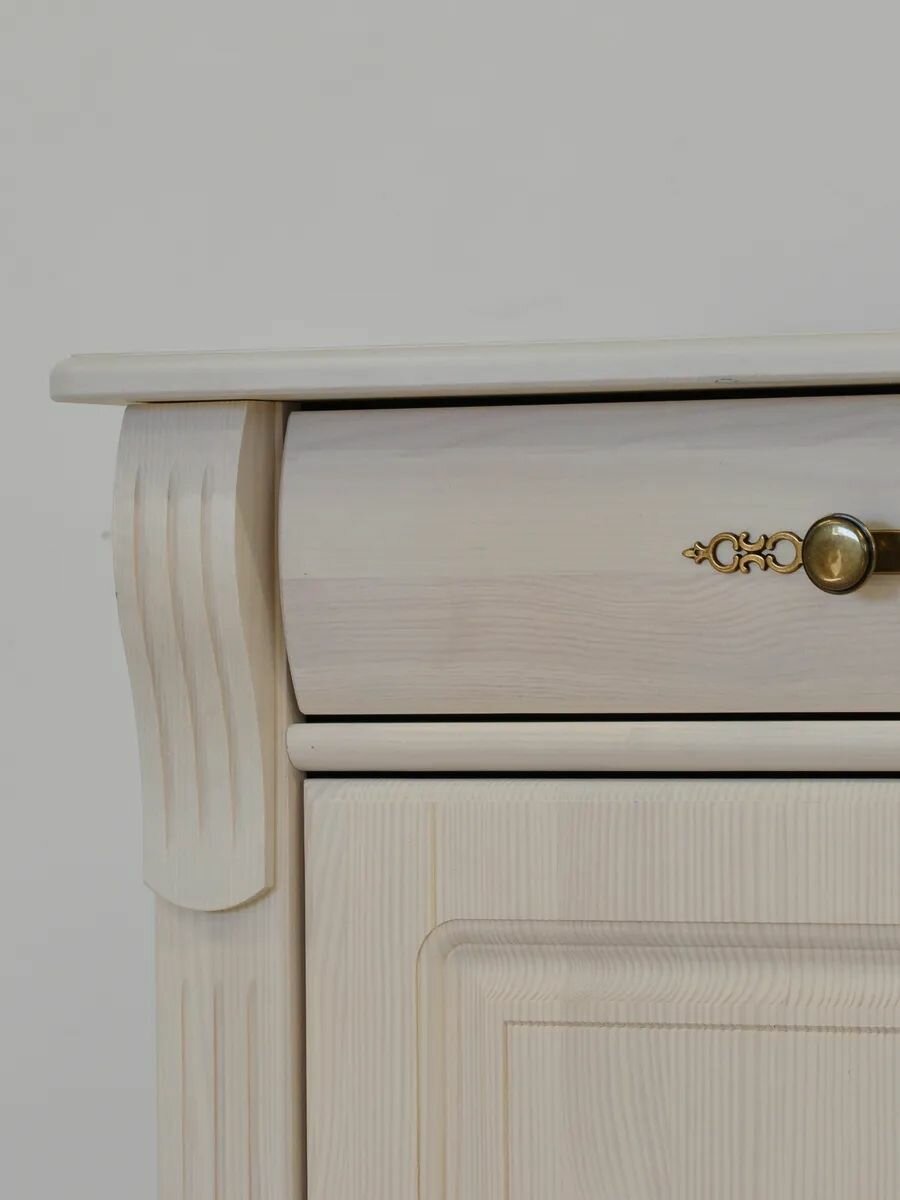 Комод "Сюзанна" из массива сосны – стиль и функциональность для вашего домаДобавьте элегантности и уюта в ваш интерьер с комодом "Сюзанна"! Изготовленный из натурального массива сосны, этот комод сочетает в себе классический дизайн и практичность. Скандинавский белый цвет и изящные латунные ручки с декоративными элементами придают ему утонченный винтажный шарм, который идеально впишется в спальню, гостиную или прихожую. Характеристики: