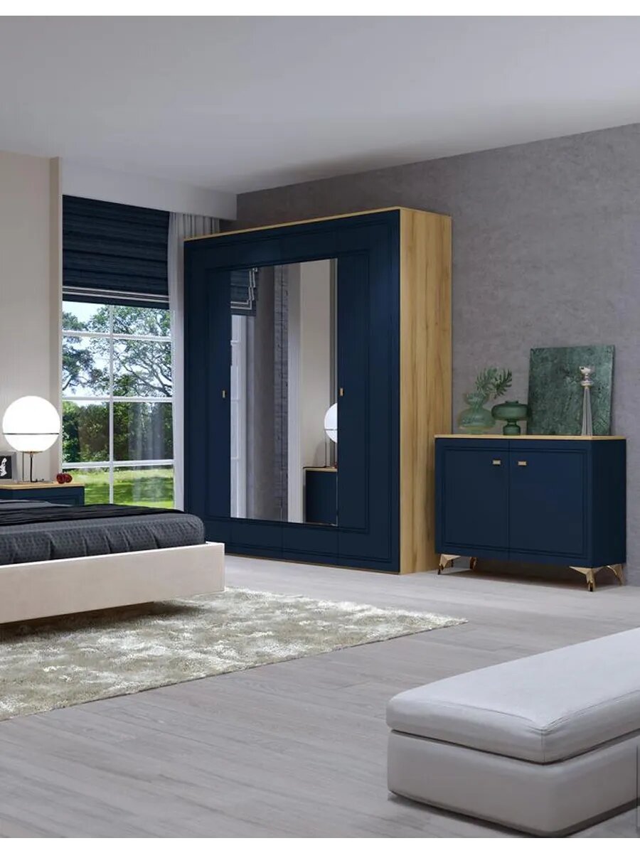 Комод для одежды Вега Сапфир с полками 100х42х85 см, Дуб золотистый / Темно-синий софт: сравнение цен, характеристики, фото, актуальное наличие и цены.