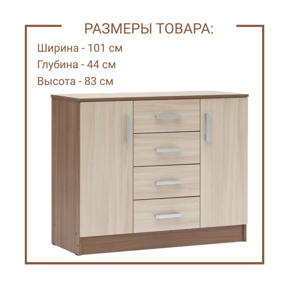 Комод для вещей К1000-2Д, с ящиками и дверцами, шириной 101 см, цвет ясень шимо темный/светлый: сравнение цен, характеристики, фото, актуальное наличие и цены.