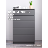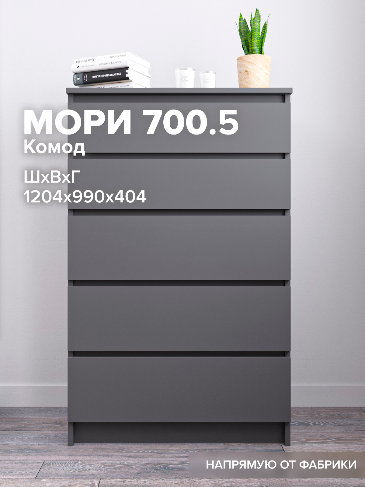 Комод для одежды Мори МК 700.5, 5 ящиков, без лицевой фурнитуры, ЛДСП графит матовый: сравнение цен, характеристики, фото, актуальное наличие и цены.