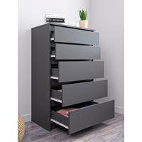 Купить Комод для одежды Мори МК 700.5, 5 ящиков, без лицевой фурнитуры, ЛДСП графит матовый с доставкой по всей России.
