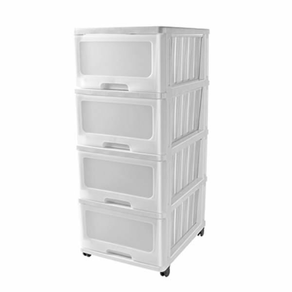 Купить Комод Дунья Догуш Пластик «Клиер», 4 ящика, 400х500х985 мм, на колесиках, белый с доставкой по всей России.