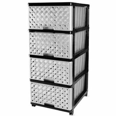 Купить Комод Dunya Plastik «Сетка», четырехъярусный, пластмассовый, 40х50х99 см, серебристо-черный с доставкой по всей России.
