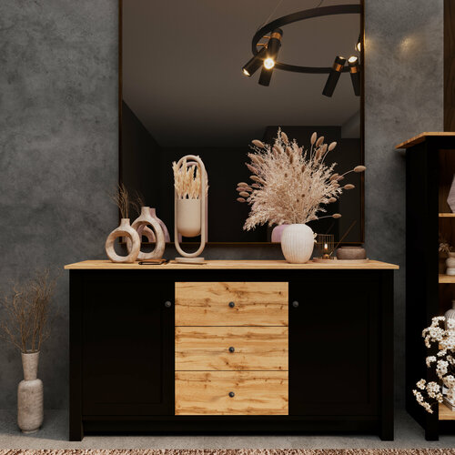 Комод двухдверный с выдвижными ящиками Moldon ТМ ДЭФО 170x44x90 см, Дуб натюрель / Черный графит: сравнение цен, характеристики, фото, актуальное наличие и цены.