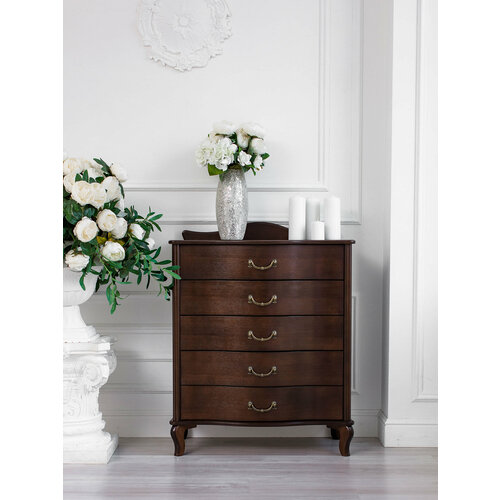 Комод Джульетта с 5 выдвижными ящиками из серии классической мебели "Джульетта" производства Фабрики "Висан". Комод подойдет для спальни, гостиной, детской комнаты или прихожей. Мебель изготовлена из экологичных материалов и создаст атмосферу тепла и уюта в доме.
