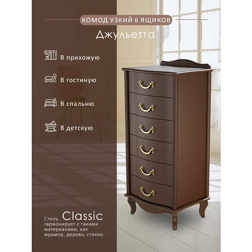 Купить Комод Мебелик Джульетта узкий 6 ящиков, на ножках, в прихожую, в спальню цвет орех Л с доставкой по всей России. Комод Мебелик Джульетта узкий 6 ящиков, на ножках, в прихожую, в спальню цвет орех Л: сравнение цен, характеристики, фото, актуальное наличие и цены.