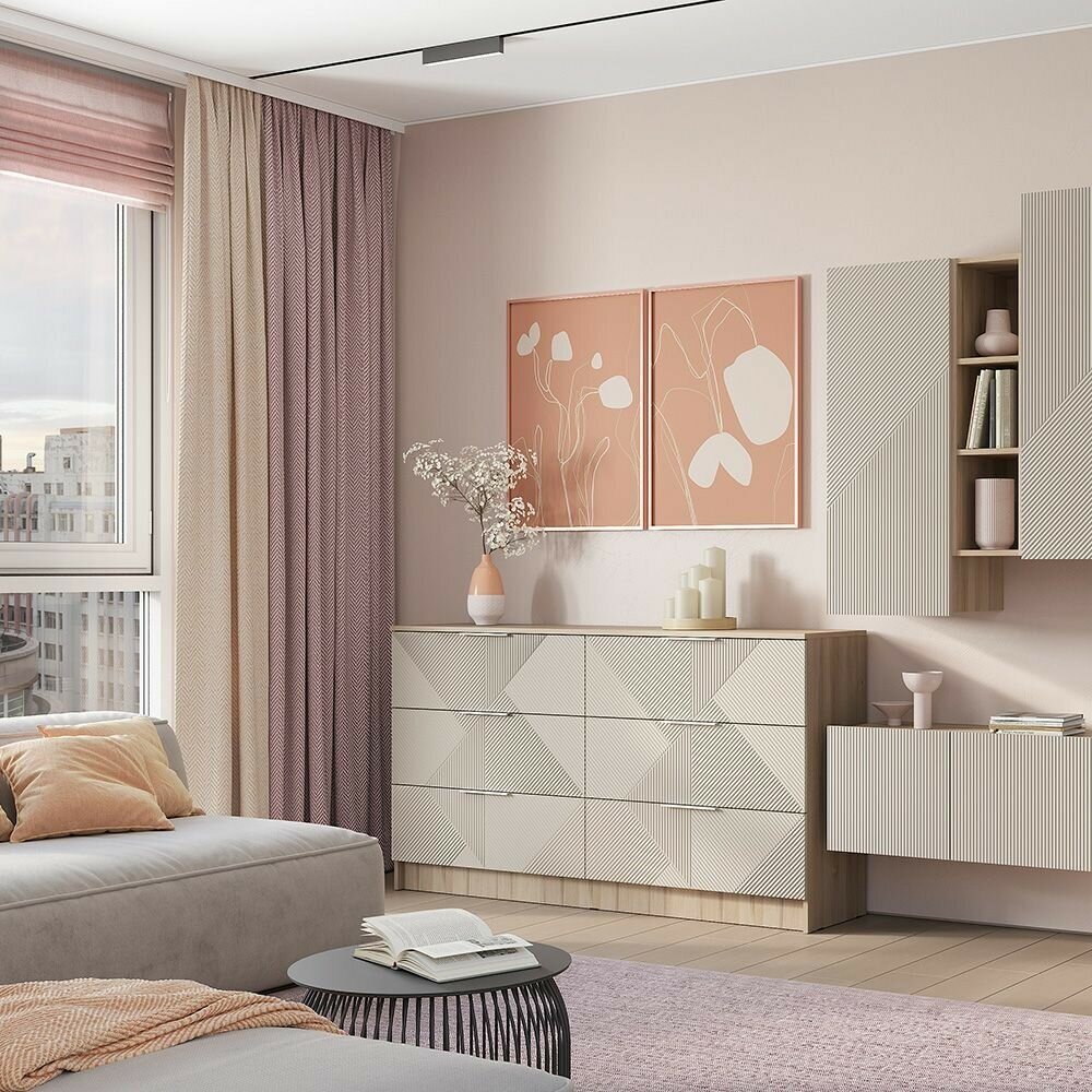 Комод BTS Эмилия КМ-04 — это вместительный и практичный элемент мебели, идеально подходящий для хранения одежды, постельного белья и различных аксессуаров. Он оснащен шестью выдвижными ящиками, что позволяет удобно организовать пространство для хранения.