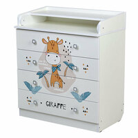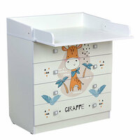 Комод имеет откидную пеленальную поверхность, которая снимается. Фасад и корпус выполнен из ЛДСП производства Kronospan (Австрия). Состоит из 4 ящиков с эргономичными ручками. Ящики на роликовых направляющих. Габариты (ВхШхГ): 92,2х80,4х46,7см. Размер пеленального матрасика на комод: 72х77 см.