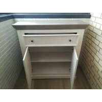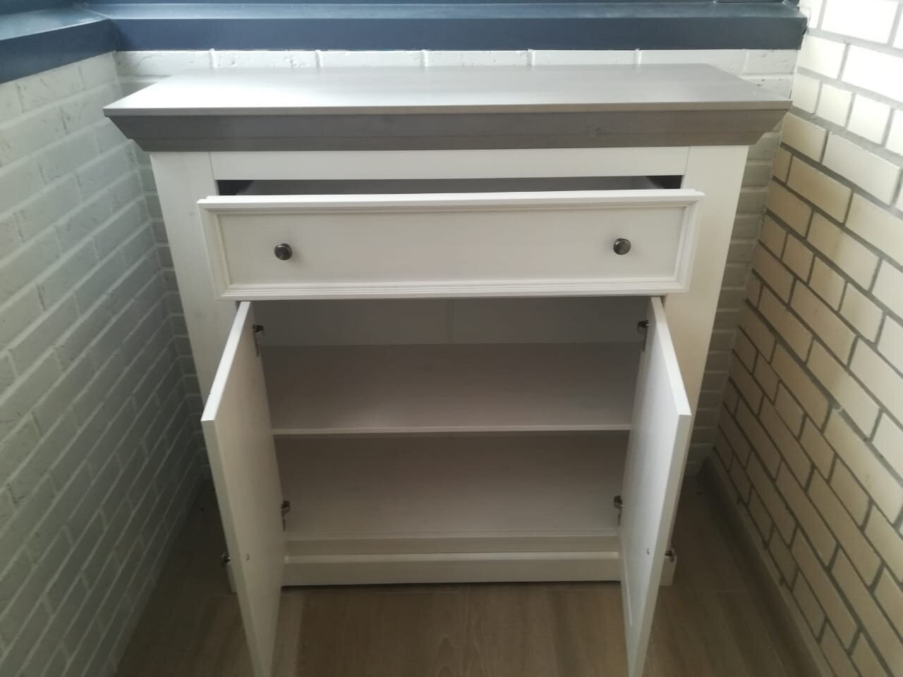 Комод Фламберже имеет две двери и один ящик на роликовых направляющих от крупнейшей немецкой компании Hafele. За дверками находится 1 полка, которую можно переставлять по высоте.