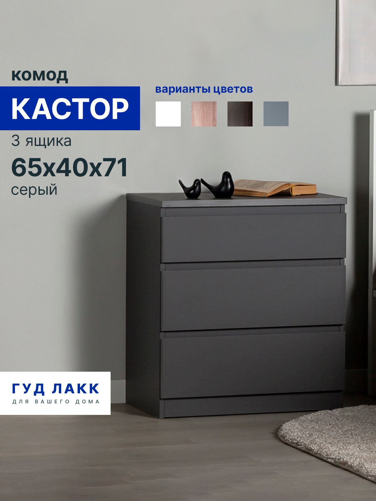 Комод для одежды с ящиками, 65х40х71 см, ЛДСП, серый Гуд Лакк Кастор: сравнение цен, характеристики, фото, актуальное наличие и цены.