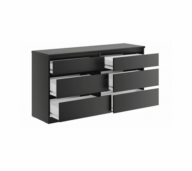 Почему выбирают комод кастор 6 ящиков? Комод кастор недорогой и универсальный комод небольшого размера, у которого два вида ящиков – верхние, менее глубокие, служат для хранения необходимых мелочей, чтобы были всегда под рукой, и другие, более вместительные – для подушек, одеял, белья или одежды, ведь благодаря максимальной нагрузке 8 кг они подходят для любых целей. Комод кастор может служить не только отличным комодом, но и прекрасной ТВ тумбой, максимальная рекомендованная нагрузка на столешницу 15 кг! Ширина столешницы целых 130 см позволяет использовать поверхность комода эффективно – разместить телевизор с большой диагональю, PlayStation, фоторамки и вазы. Серия комодов и тумб кастор самая компактная из мебели ГУД ЛАКК, и позволяет разместить их в действительно небольших пространствах. Идеальное соотношение цены и качества!