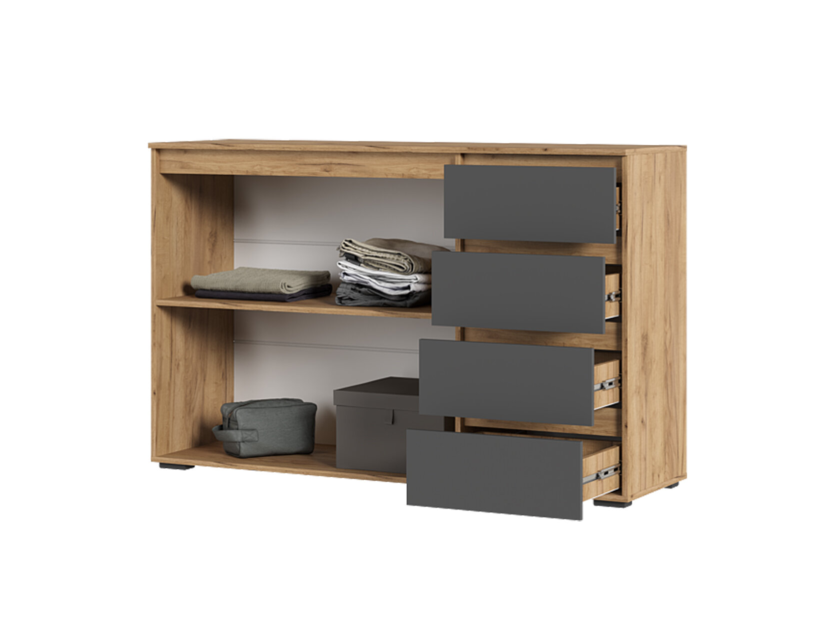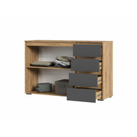 Купить Комод Хелен КМ-06 — 4 ящика (1502х958х460) Дуб крафт золото — Серый графит с доставкой по всей России.