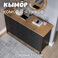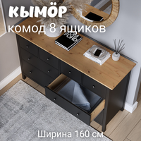 Комод с 8 ящиками деревянный, Хемнэс/Кымор, 160х50х95 см, черный/светло-коричневый: сравнение цен, характеристики, фото, актуальное наличие и цены.