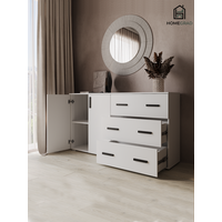 Комод Boston белый подойдет даже для небольшой спальни, при этом пять объемных ящиков вместят белье и другие предметы гардероба. Комод выполнен из качественного ЛДСП с применением современных технологий. Надежная столешница комода может быть использована в качестве ТВ подставки или подставки для комнатных растений. При производстве корпусной мебели используются только качественные материалы: фасады и корпус ЛДСП, надежная мебельная фурнитура и крепления. Легкая сборка – также является преимуществом наших изделий, для сборки потребуется только отвёртка и шестигранник. Обращаем Ваше внимание, что это не икеа ( не IKEA). Комод белый подходит для любых комнат: для гостиной, спальни, детской комнаты, прихожей. Служит для хранения вещей: одежды, нижнего белья, детских игрушек, обуви, документов