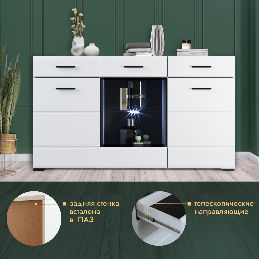 Купить Комод Йорк 2 двери 1 витрина 2 ящика белый глянцевый со стеклом витриной, тумба в комнату, гостиную, спальню, прихожую, для дома (150х45х86.3см) с доставкой по всей России. Комод Йорк 2 двери 1 витрина 2 ящика белый глянцевый со стеклом витриной, тумба в комнату, гостиную, спальню, прихожую, для дома (150х45х86.3см): сравнение цен, характеристики, фото, актуальное наличие и цены.