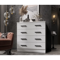 Современный и стильный комод с четырьмя выдвижными ящиками К 800 отлично впишется как в просторные помещения, так и в маленькие комнаты и даже при обустройстве офисных помещений. А система хранения оборудованная выдвижными ящиками поможет сохранить одежду и личные вещи в полном порядке. Надёжная столешница комода может быть использована как тумба ТВ, а также подставкой для светильника, цветов или же в прихожей для сумки. Комод представлен в цветах: Венге/Лоредо, Ясень шимо, Белый гладкий и Дуб Вотан/Белый гладкий. Цвет фасада: Белый гладкий Цвет корпуса: Белый гладкий Материал фасадов: ЛДСП Материал корпуса: ЛДСП Комод с 4-мя ящиками. В комплекте имеется вся необходимая фурнитура и инструкция по сборке изделия!
