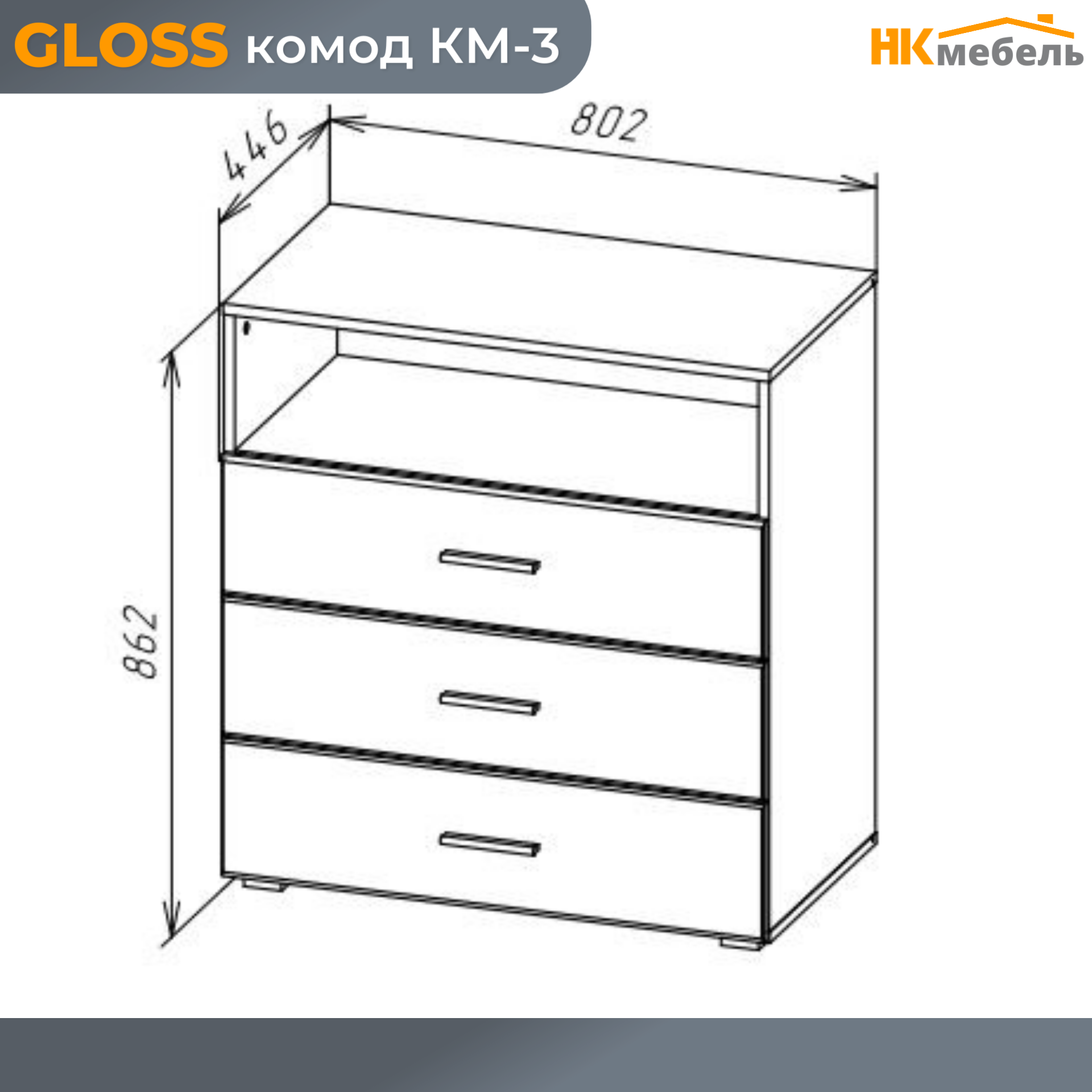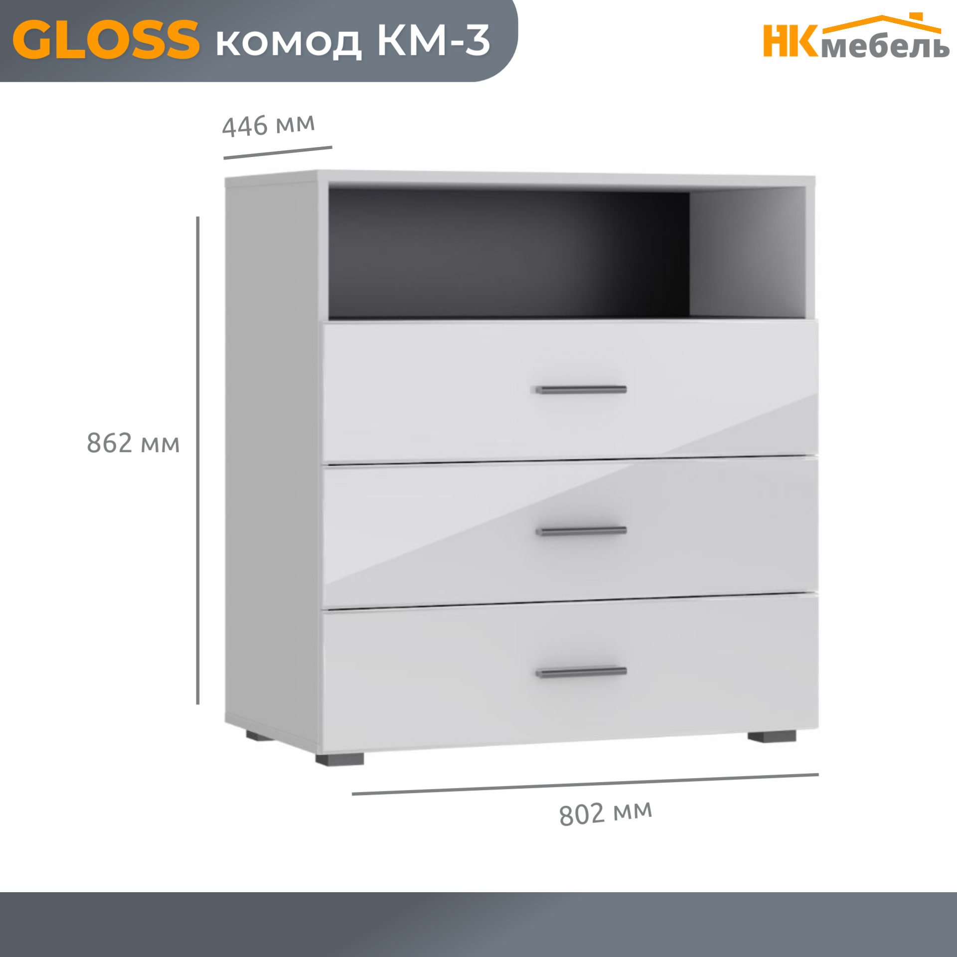 GLOSS (глосс) комод КМ-3, МДФ/ЛДСП, 80,2 х 86,2 х 44,6 см, Белый Глянец/Белый: сравнение цен, характеристики, фото, актуальное наличие и цены.