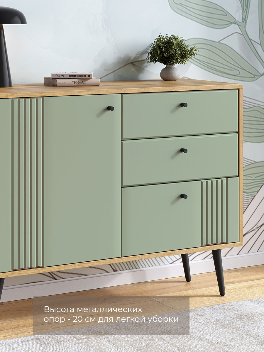 Комод имеет высоту ножек 20 см, что позволяет легко поддерживать чистоту и порядок в помещении. Вес комода составляет 45 кг, что говорит о его прочности и устойчивости.