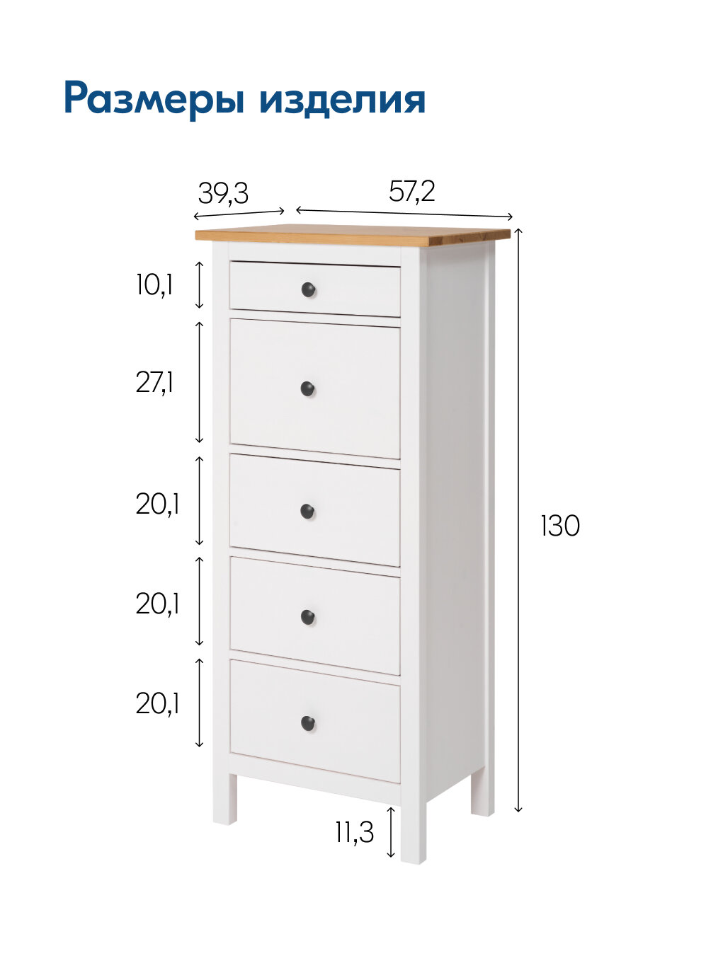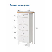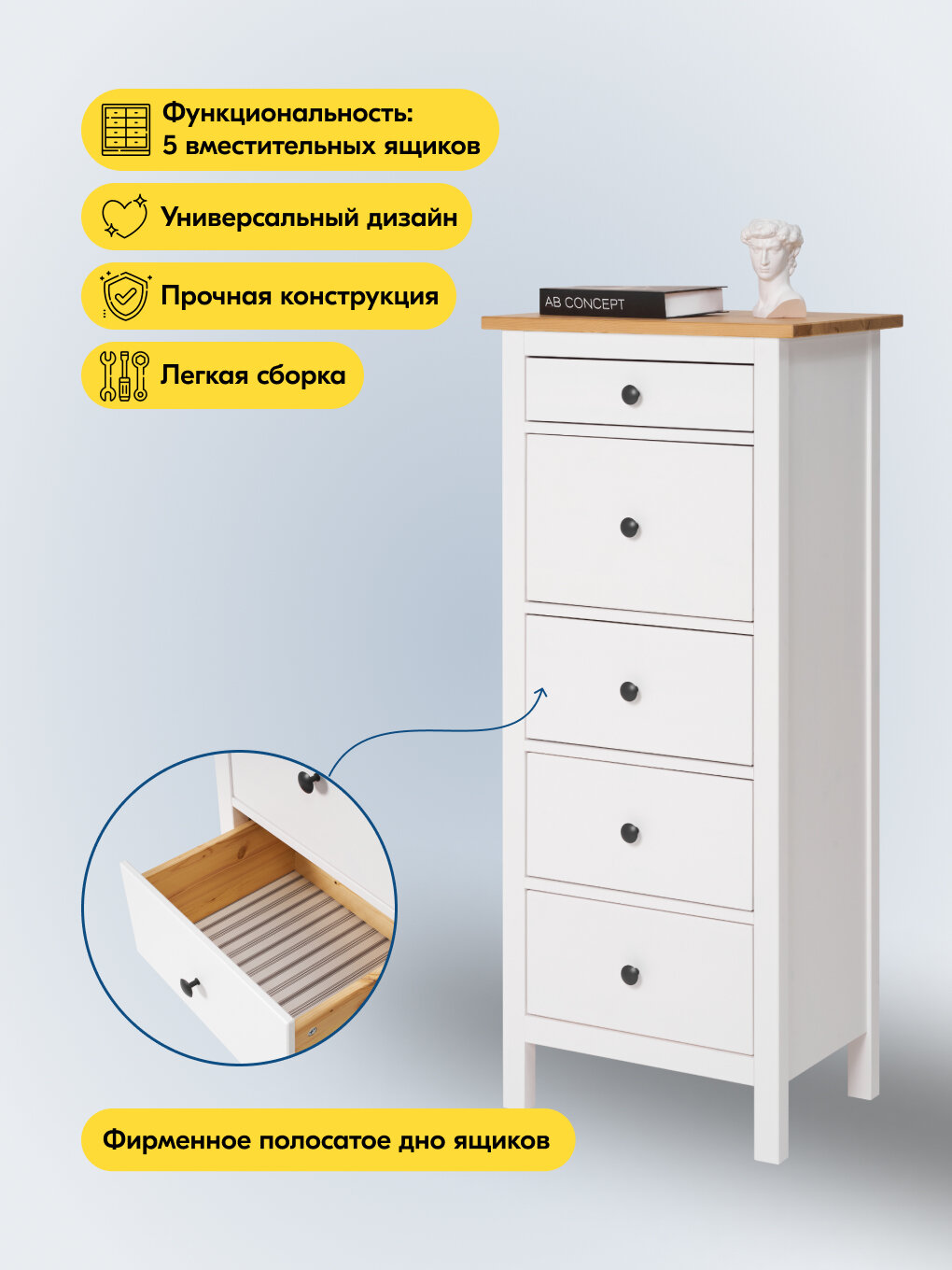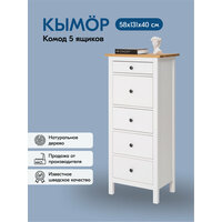 Комод Хемнэс Hemnes/ Кымор, 57х130х39см, 5 ящиков, белый/светло-коричневый: классический стиль и современный дизайн. Изготовлен из массива сосны