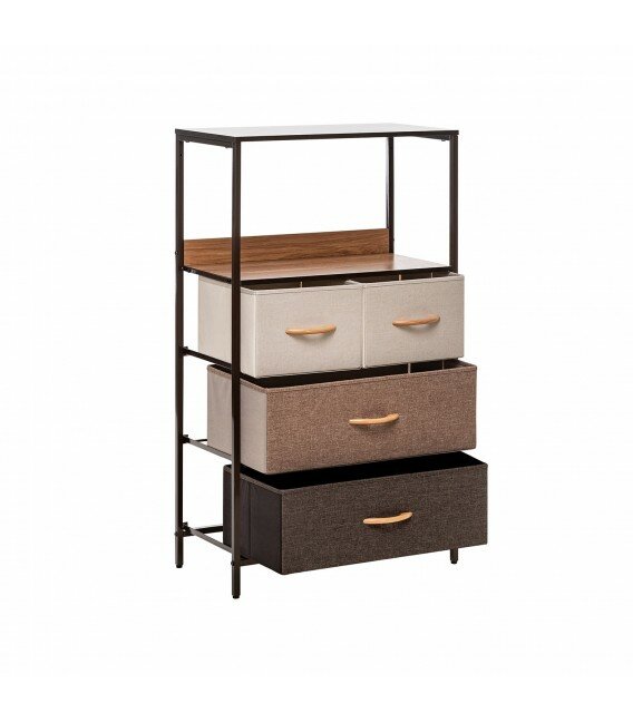 Купить Комод Leset Локи 4 ящ, Каркас Коричневый, Бежевый/Светло-коричневый/Темно-коричневый, искусственный лён с доставкой по всей России.