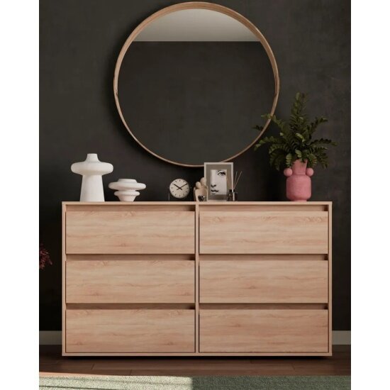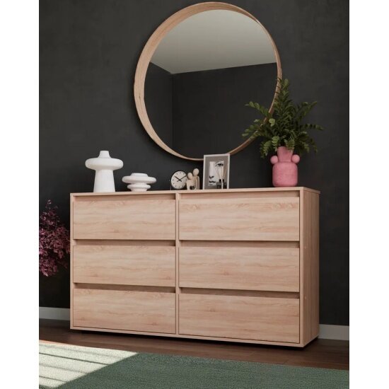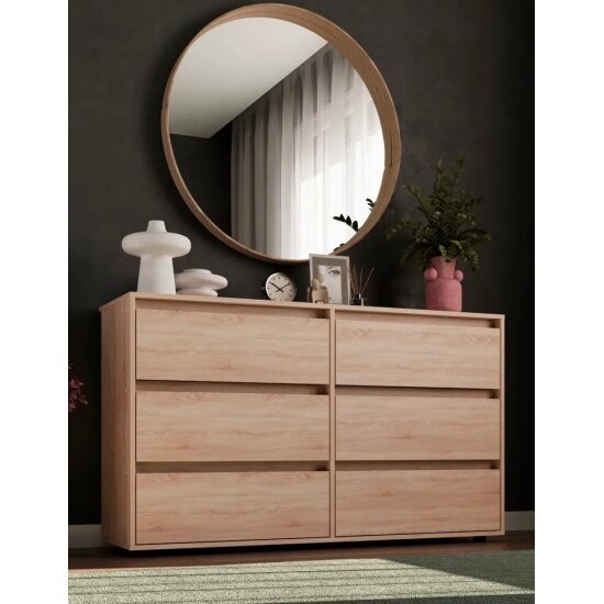 Комод оборудован шестью вместительными ящиками, что позволяет использовать его для хранения различных предметов, от одежды до постельных принадлежностей.