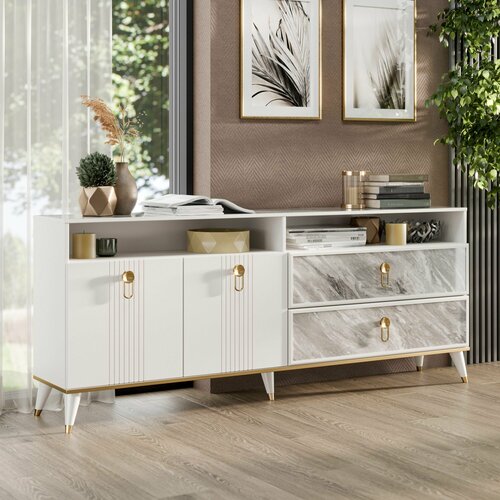 Комод для одежды Айла с 2 ящиками, 200х36.6х81.7 см, Белый/Статуарио: сравнение цен, характеристики, фото, актуальное наличие и цены.