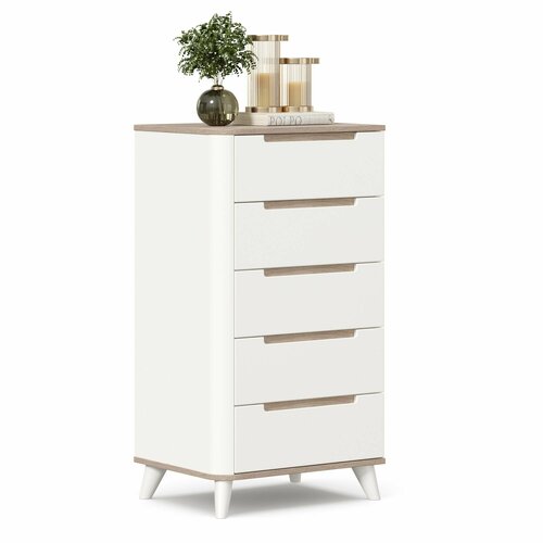 Комод для одежды Стефания с 5 ящиками, 55.6х42.6х104 см, Дуб Маувелла PR/Белый: сравнение цен, характеристики, фото, актуальное наличие и цены.