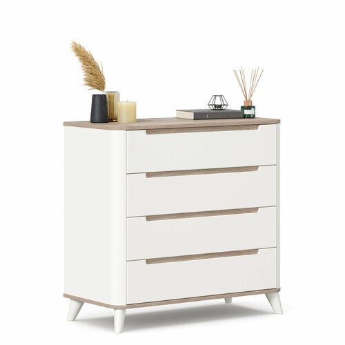Купить Комод для одежды Стефания с 4 ящиками, 89х42.6х86 см, Дуб Маувелла PR/Белый с доставкой по всей России.