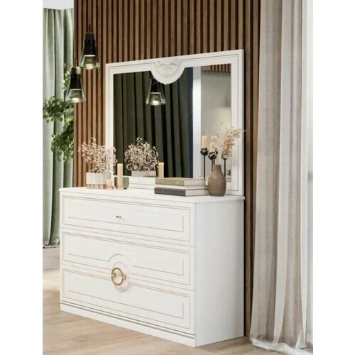 Комод Любимый Дом Вилла, 120 х см, с зеркалом, ручка-кнопка, Белый/Золото глянец: сравнение цен, характеристики, фото, актуальное наличие и цены.