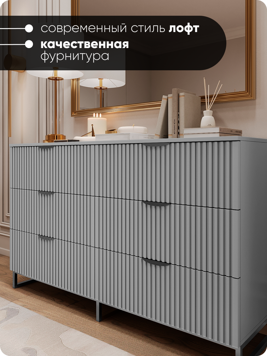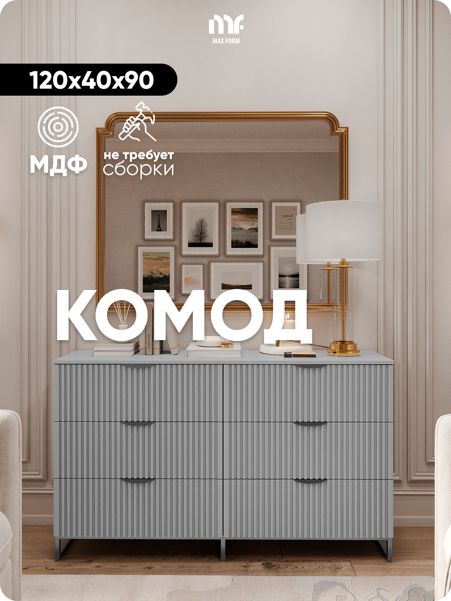 Комод «MaxForm» 120х40х90 см, 6 ящиков, серый/хром, с доводчиками и ножками, МДФ: сравнение цен, характеристики, фото, актуальное наличие и цены.