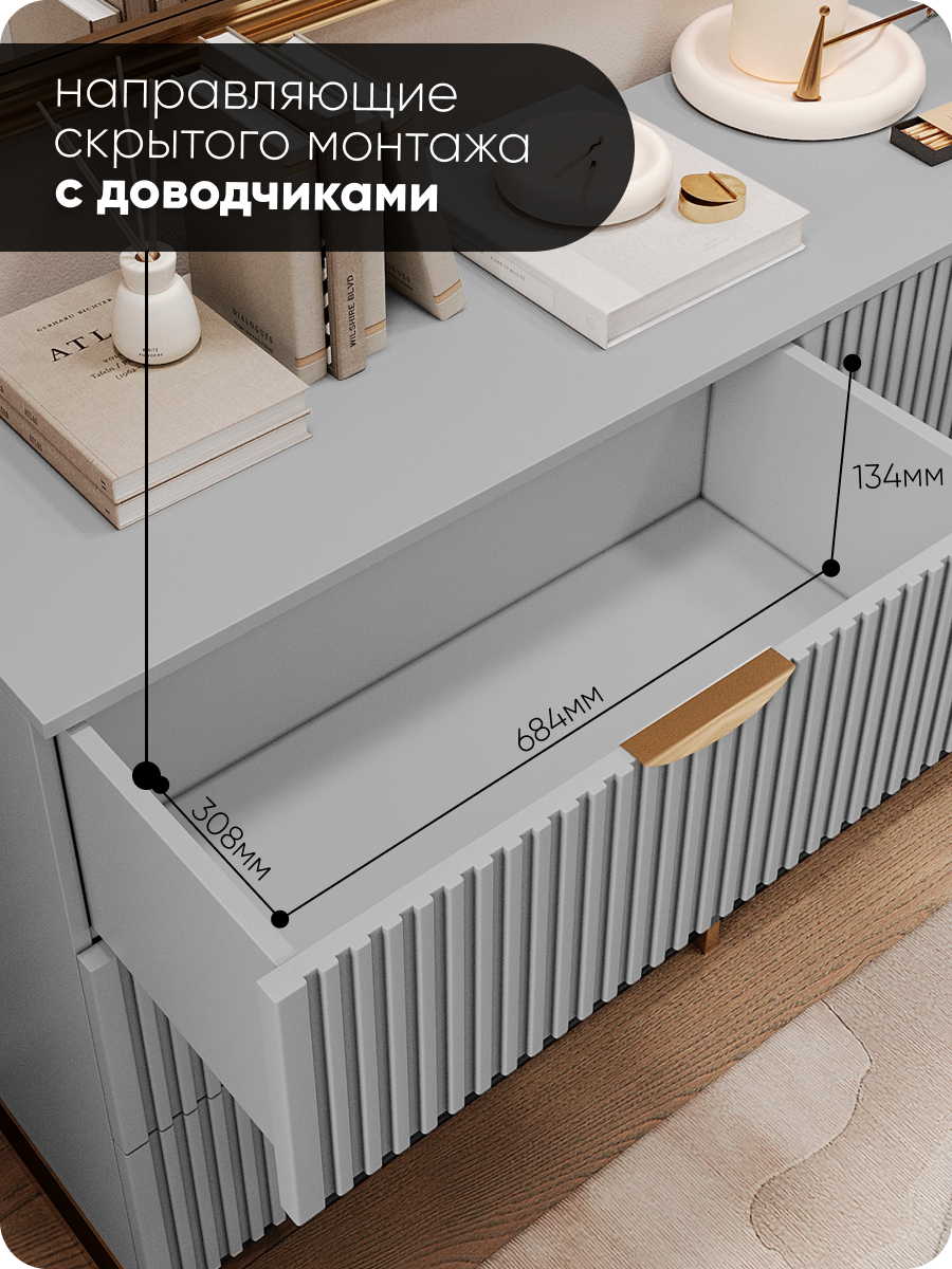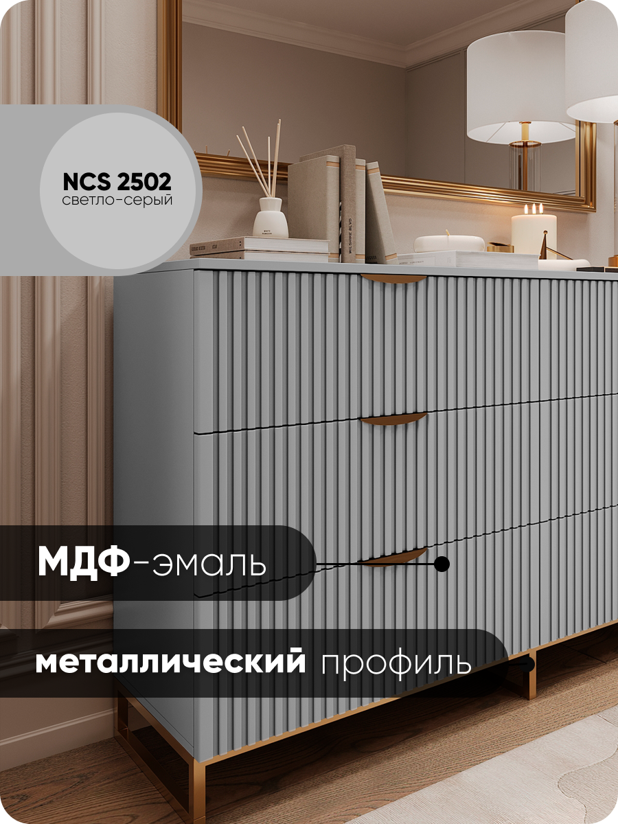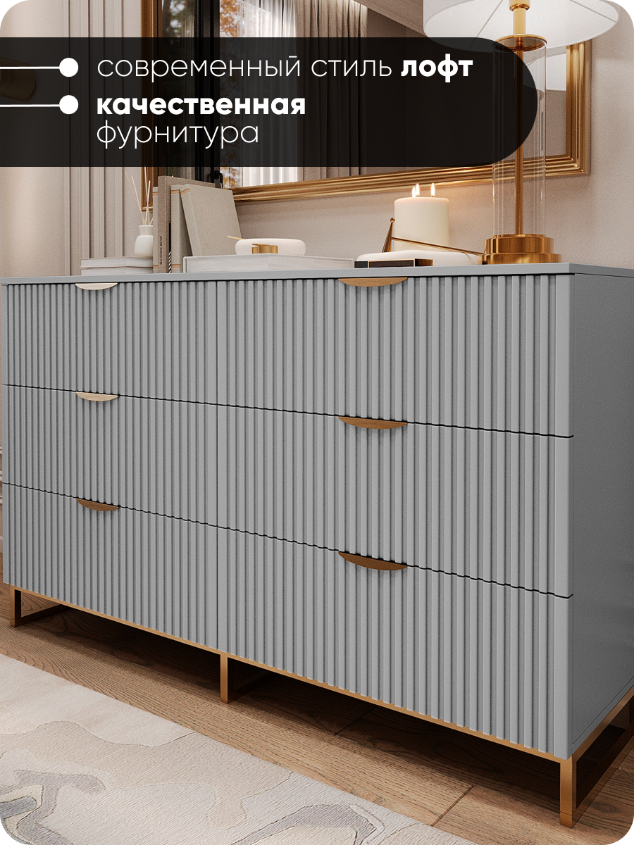 Комод «MaxForm» 150х40х90 см, 6 ящиков, серый/золото, с доводчиками и ножками, МДФ: сравнение цен, характеристики, фото, актуальное наличие и цены.
