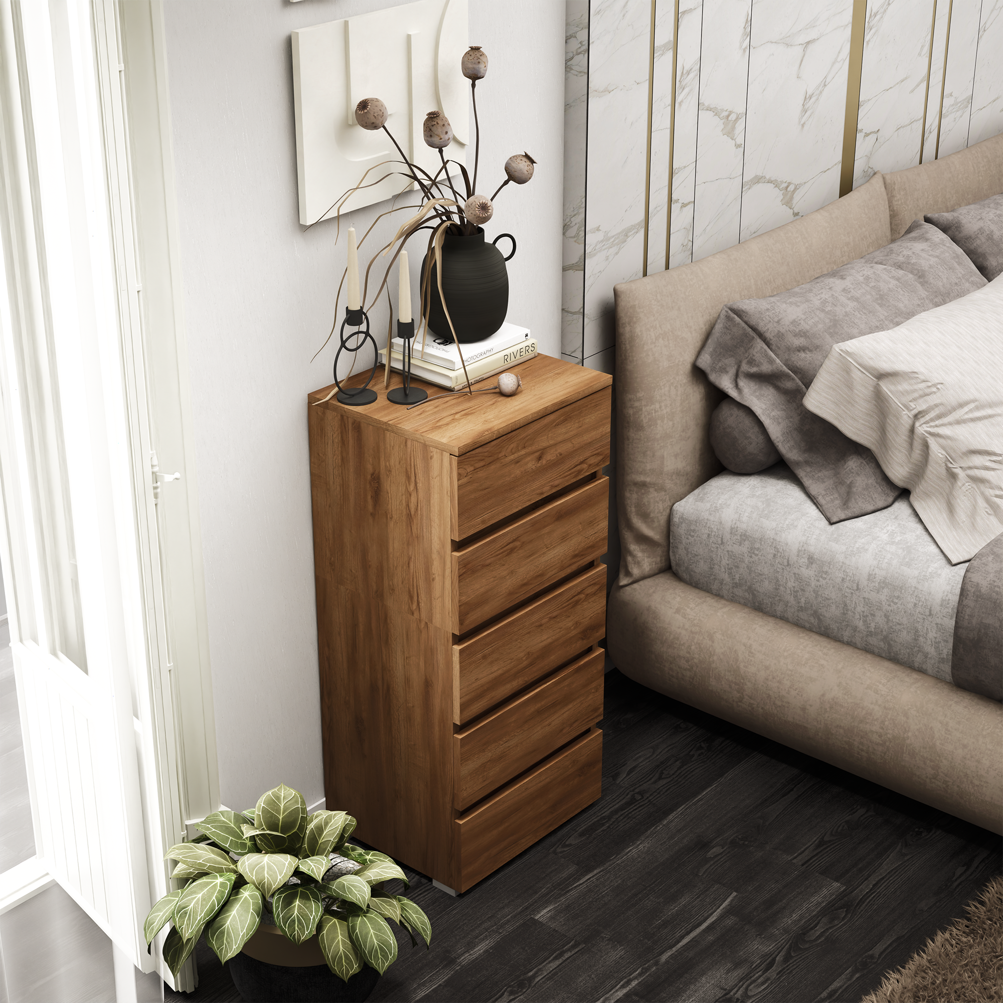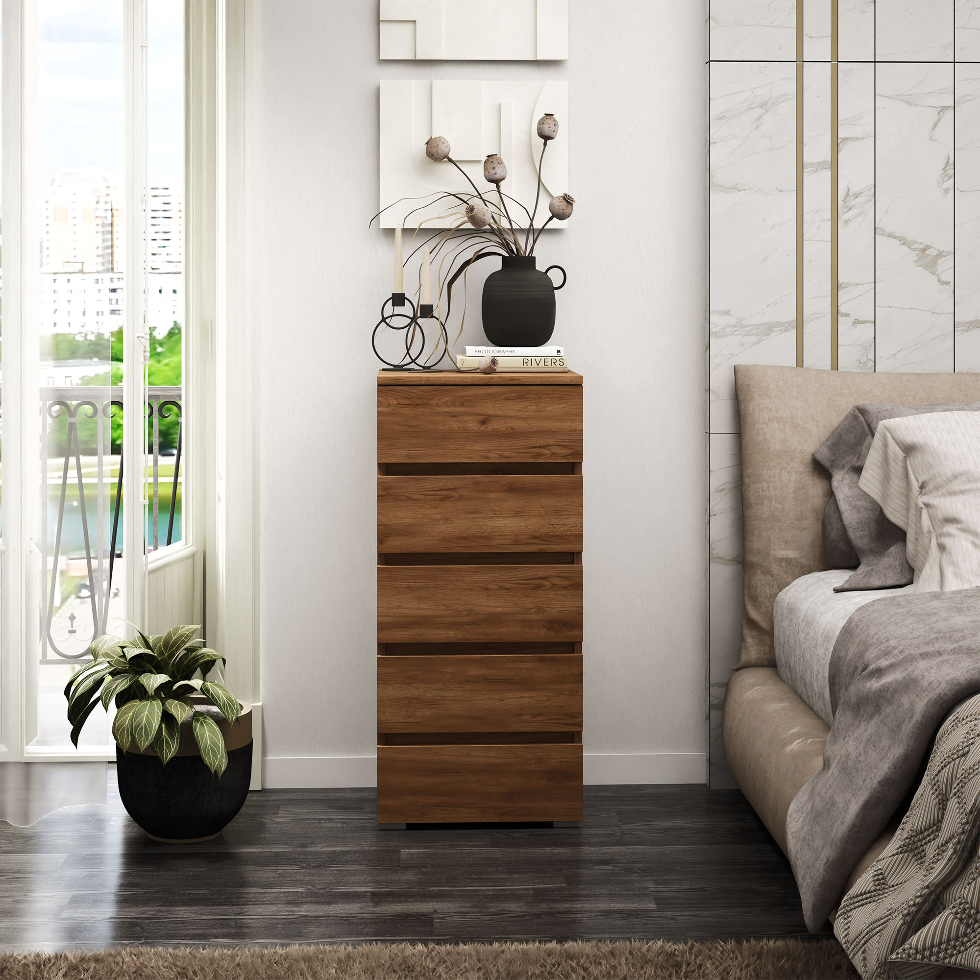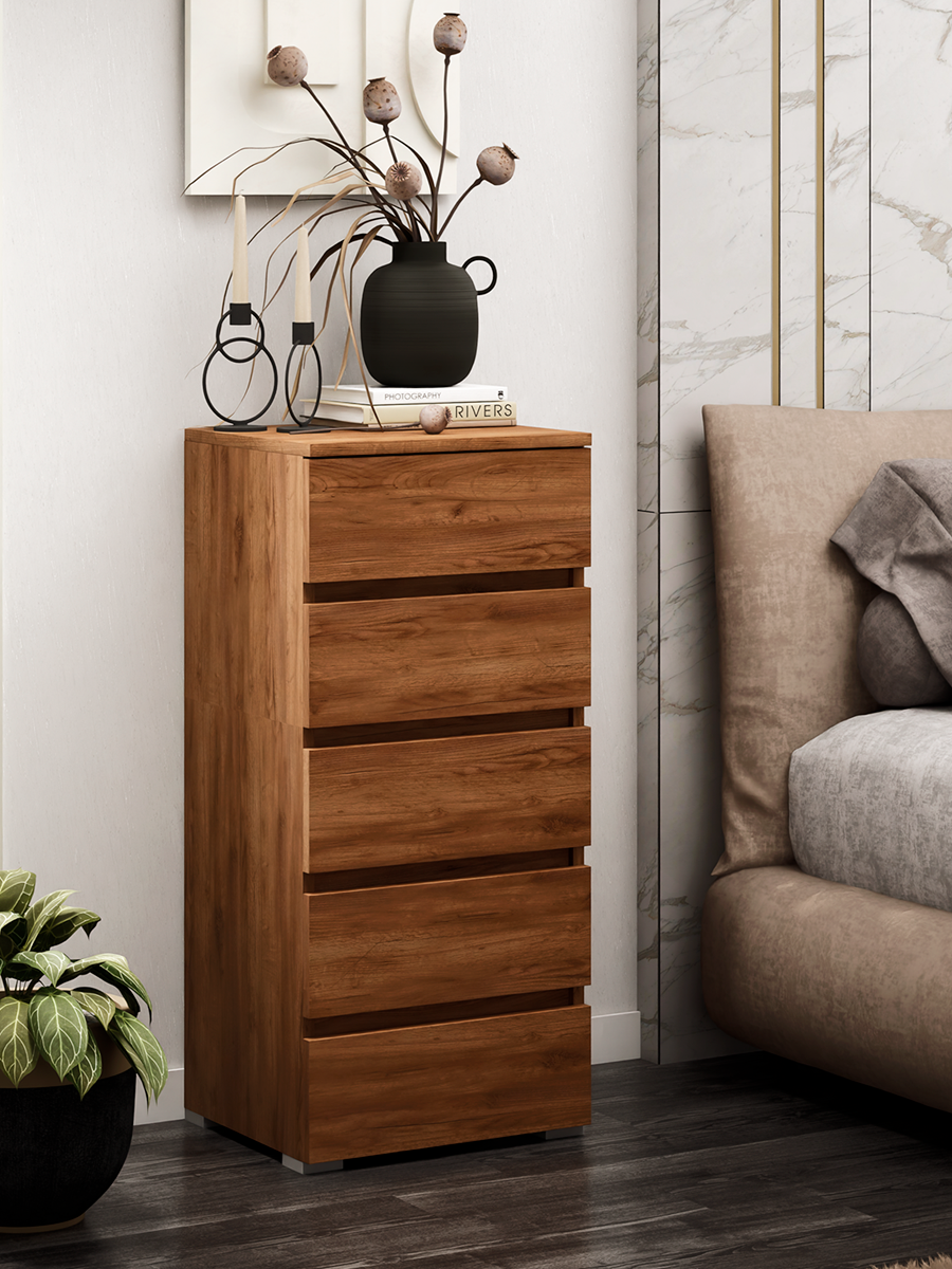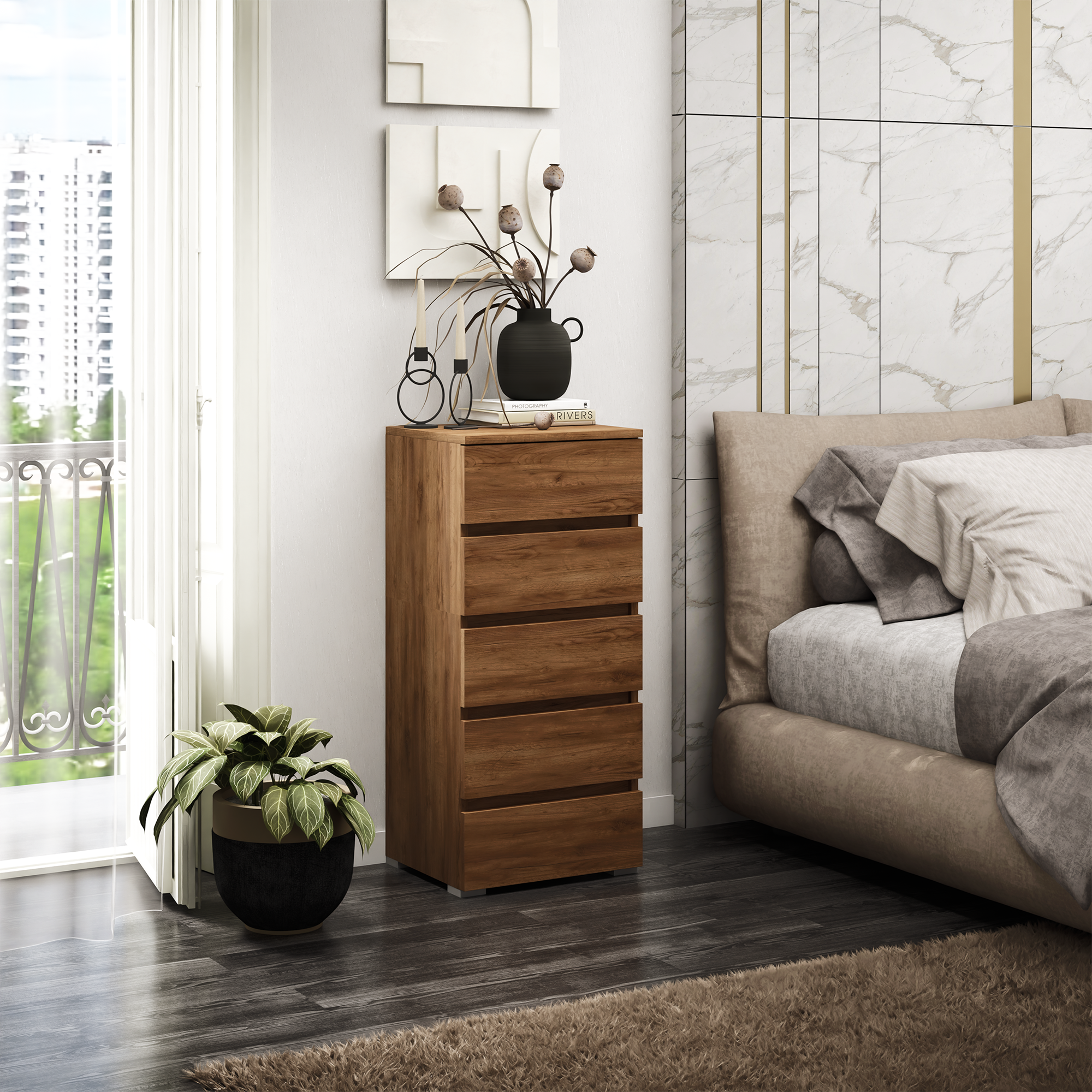Купить Комод MFMaster Vitto-52, дуб крафт табак, ЛДСП, 5 выдвижных ящиков, серый, без ручек с доставкой по всей России.