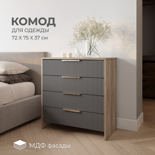 Мы представляем Вам стильный, современный и функциональный комод. Этот белый комод идеально подойдет для различных помещений, таких как прихожая, гардеробная, спальня или детская комната. Корпус комода изготовлен из прочного и качественного ЛДСП, что гарантирует его долговечность. Фасады комода выполнены из МДФ и украшены вертикальной фрезеровкой. Реечный дизайн – основной тренд 2024 года. Дизайн комода "Мичиган" отличается изысканностью и лаконичностью. Оригинальная фрезеровка и эксклюзивная фотопечать выглядит очень эффектно и эксклюзивно. Пыли и грязи на таких поверхностях совершенно не видно, а это огромный плюс для домохозяек. Габаритные размеры комода составляют 72 см в ширину, 75 см в высоту и 37 см в глубину, что позволяет его удобно разместить в любом помещении. Комод для одежды комплектуется понятной и подробной инструкцией по сборке, что облегчает его монтаж даже для неопытных пользователей. Основное преимущество комода – 4 выдвижных ящика для хранения различных принадлежностей. Вы сможете навести порядок в вашем пространстве и убрать все необходимые вещи в эти просторные ящики.