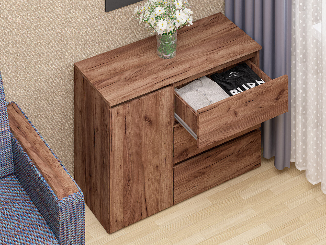 Комод МК «Пирамида» К-26 , 3 ящика и 1 распашная дверца, цвет табак , универсальный (правый, левый), 70.5х100х42 см: сравнение цен, характеристики, фото, актуальное наличие и цены.