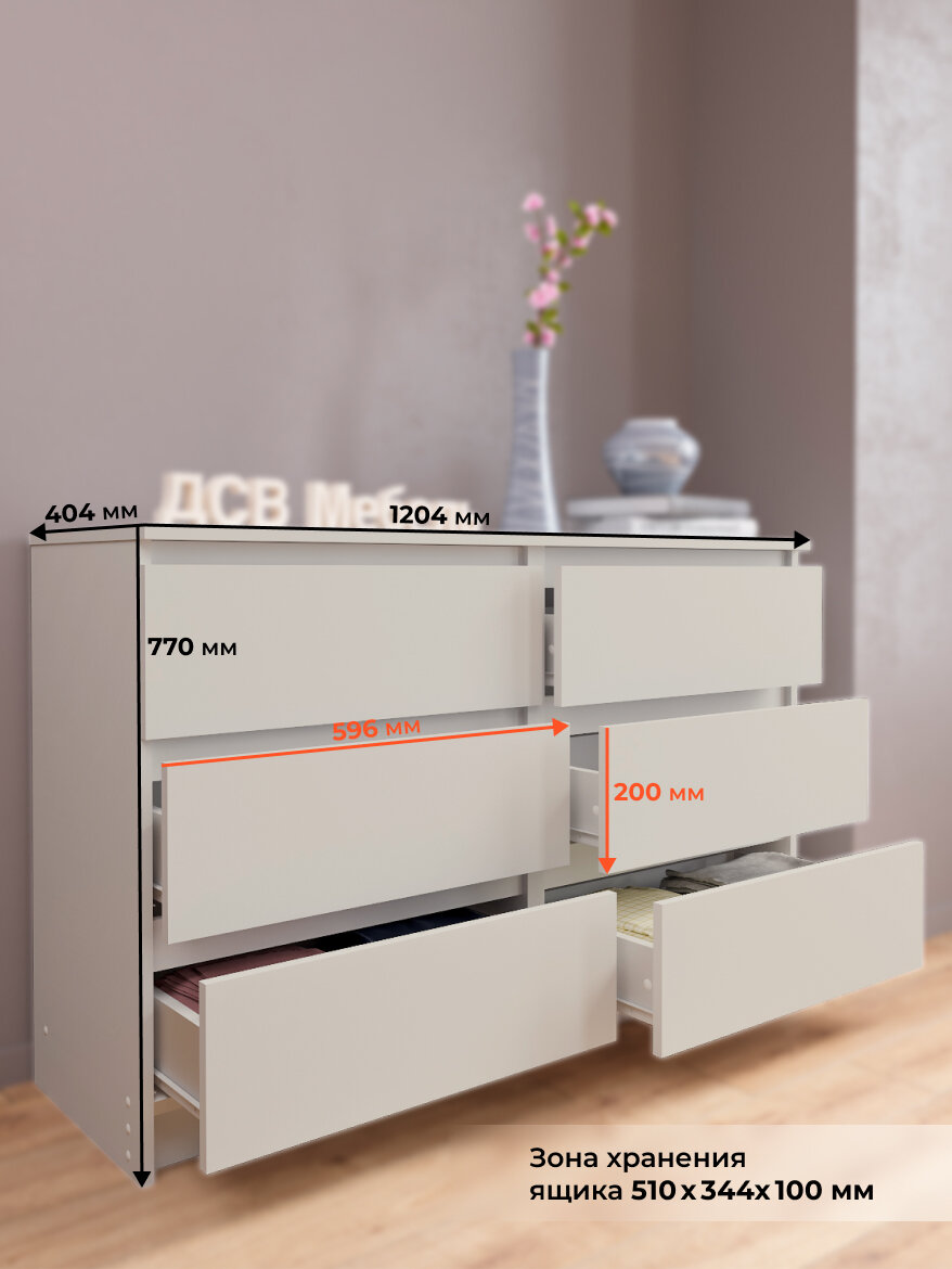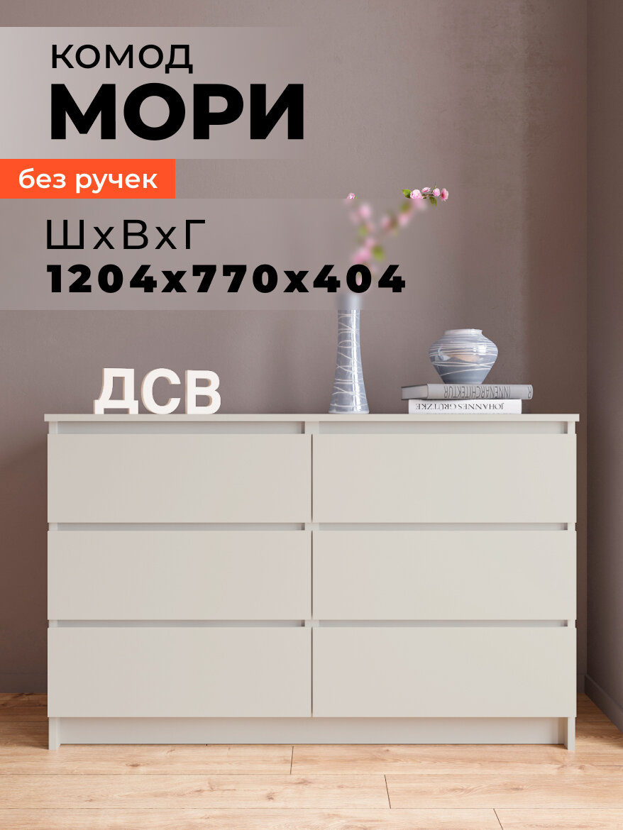 Комод Мори 1200.6 сатин, ЛДСП, 6 ящиков, минималистичный, для спальни, прихожей, гостиной, современный стиль: сравнение цен, характеристики, фото, актуальное наличие и цены.