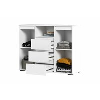 Комод напольный Хелен, 120,2х95,8х46 см, для гостиной, 3 ящика, 2 дверцы и ниша, матовый фасад, ЛДСП, цвет белый шагрень: сравнение цен, характеристики, фото, актуальное наличие и цены.