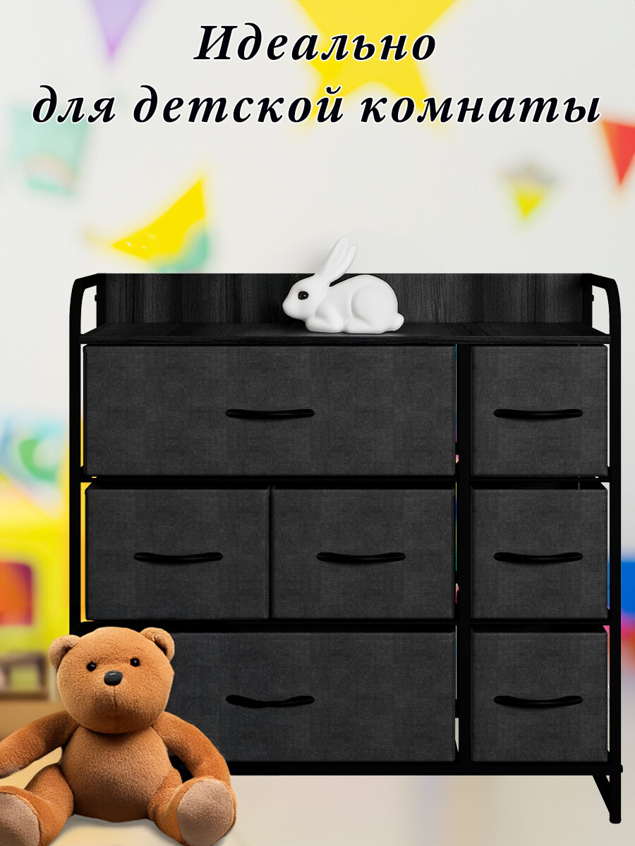 Купить Комод Noa, Каркас чёрный, 7 ящиков тёмно-серых, 80х29х79 см. с доставкой по всей России.