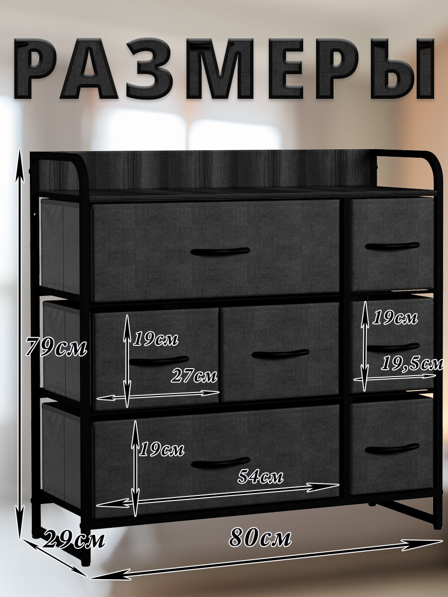 Комод Noa, Каркас чёрный, 7 ящиков тёмно-серых, 80х29х79 см.: сравнение цен, характеристики, фото, актуальное наличие и цены.