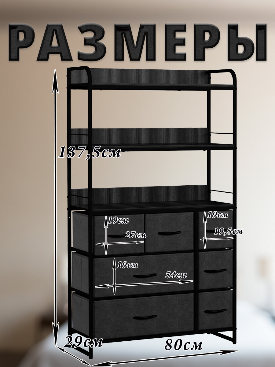 Купить Комод Noa, Каркас чёрный, 7 ящиков тёмно-серых и 2 полки, 80х29х137.5 см. с доставкой по всей России. Комод Noa, Каркас чёрный, 7 ящиков тёмно-серых и 2 полки, 80х29х137.5 см.: сравнение цен, характеристики, фото, актуальное наличие и цены.
