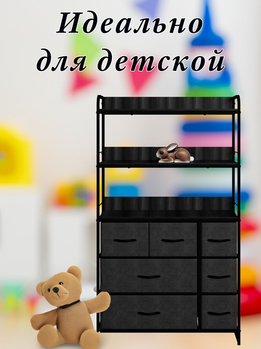 Комод Noa — это идеальное сочетание лаконичного дизайна и продуманной организации хранения. Семь вместительных тёмно-серых ящиков из дышащего материала позволяют аккуратно разложить одежду, бельё, документы и другие мелочи. Две открытые полки подойдут для книг, декора или часто используемых предметов.