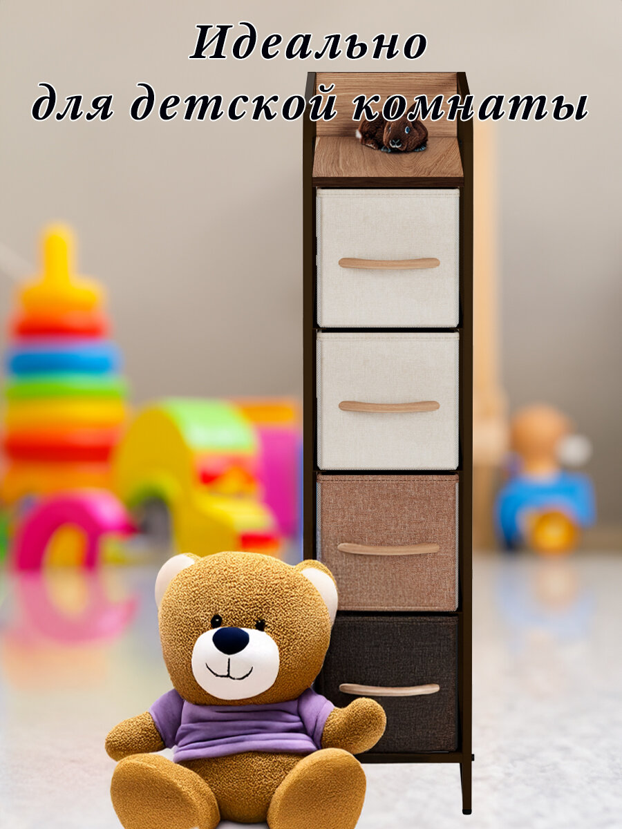 Купить Комод Noa, Каркас коричневый, Узкий 4 ящика бежевый/светло-коричневый/темно-коричневый, 20х47х84.5 см. с доставкой по всей России.
