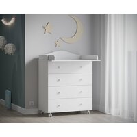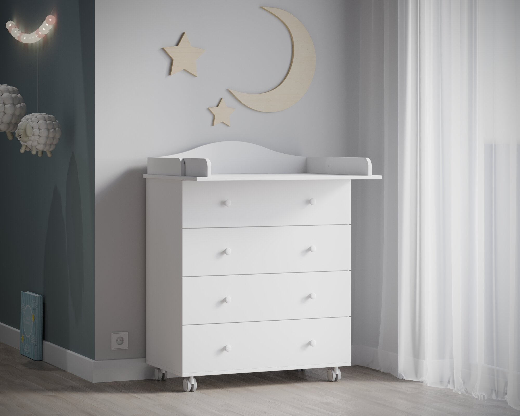 Белый цвет комода придает ему воздушность и легкость, что делает его прекрасным дополнением к интерьеру детской комнаты.