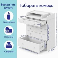 Комод пеленальный детский Maks 800/5, 80х47х101 см, 5 ящиков, с органайзером, цвет белый