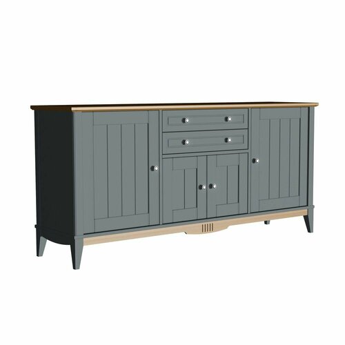 Комод оснащен четырьмя распашными дверцами и двумя удобными выдвижными ящиками, снабженными качественными шариковыми направляющими.