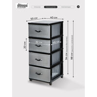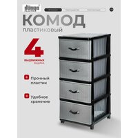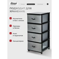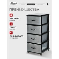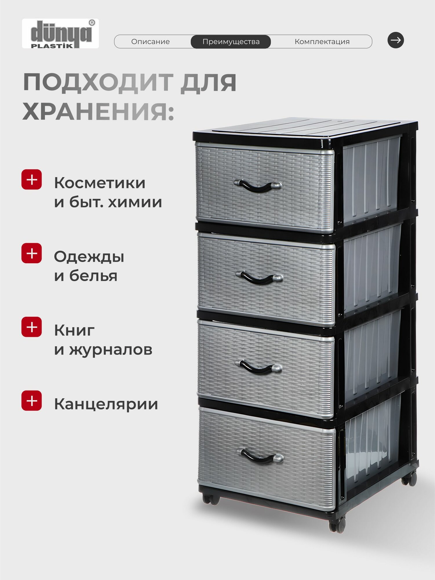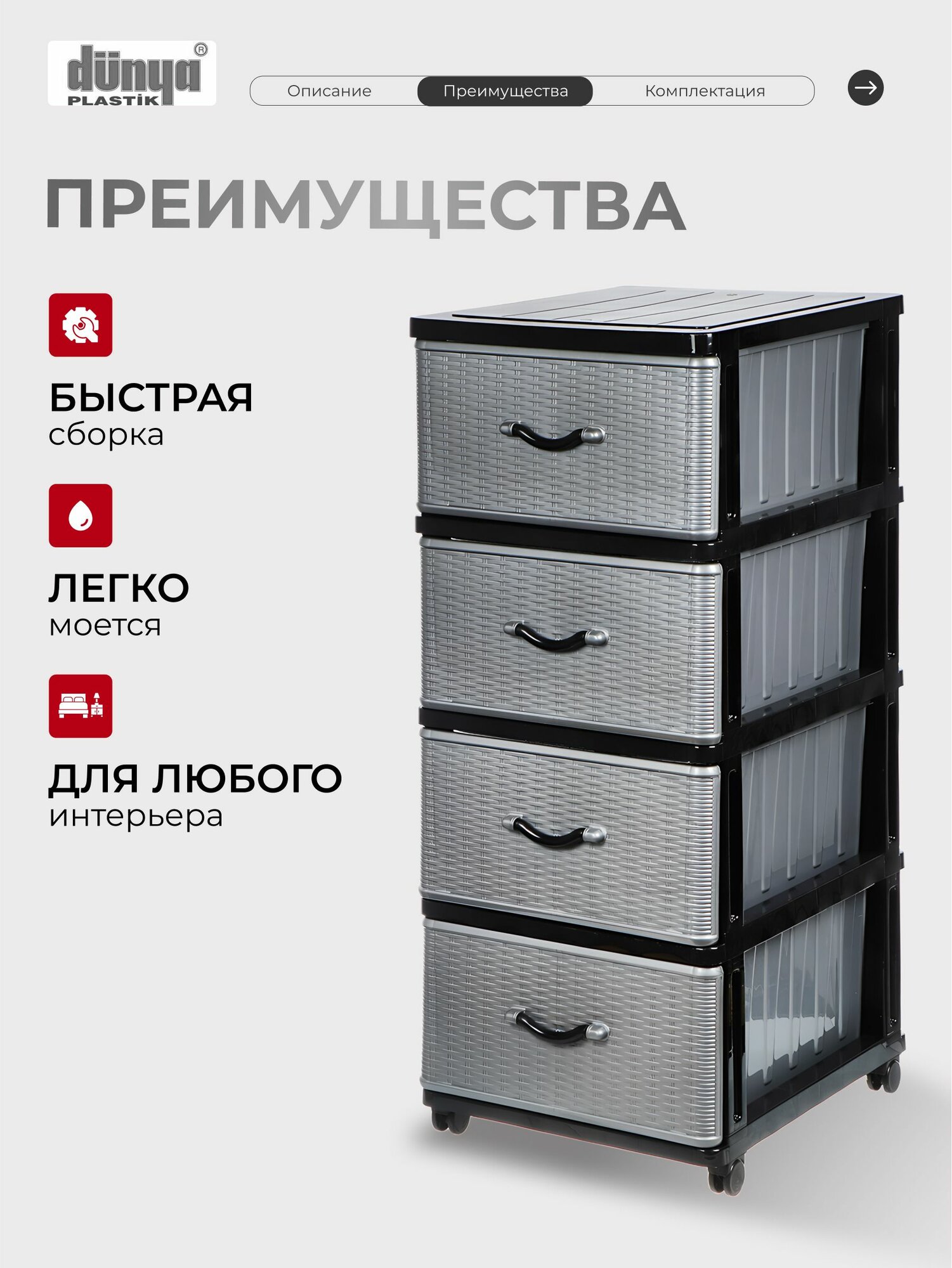 Купить Dunya Plastik, Комод с ящиками, для вещей, пластиковый, на колесах, 40х50х94 см, черно-серебряный, Дюна с доставкой по всей России.