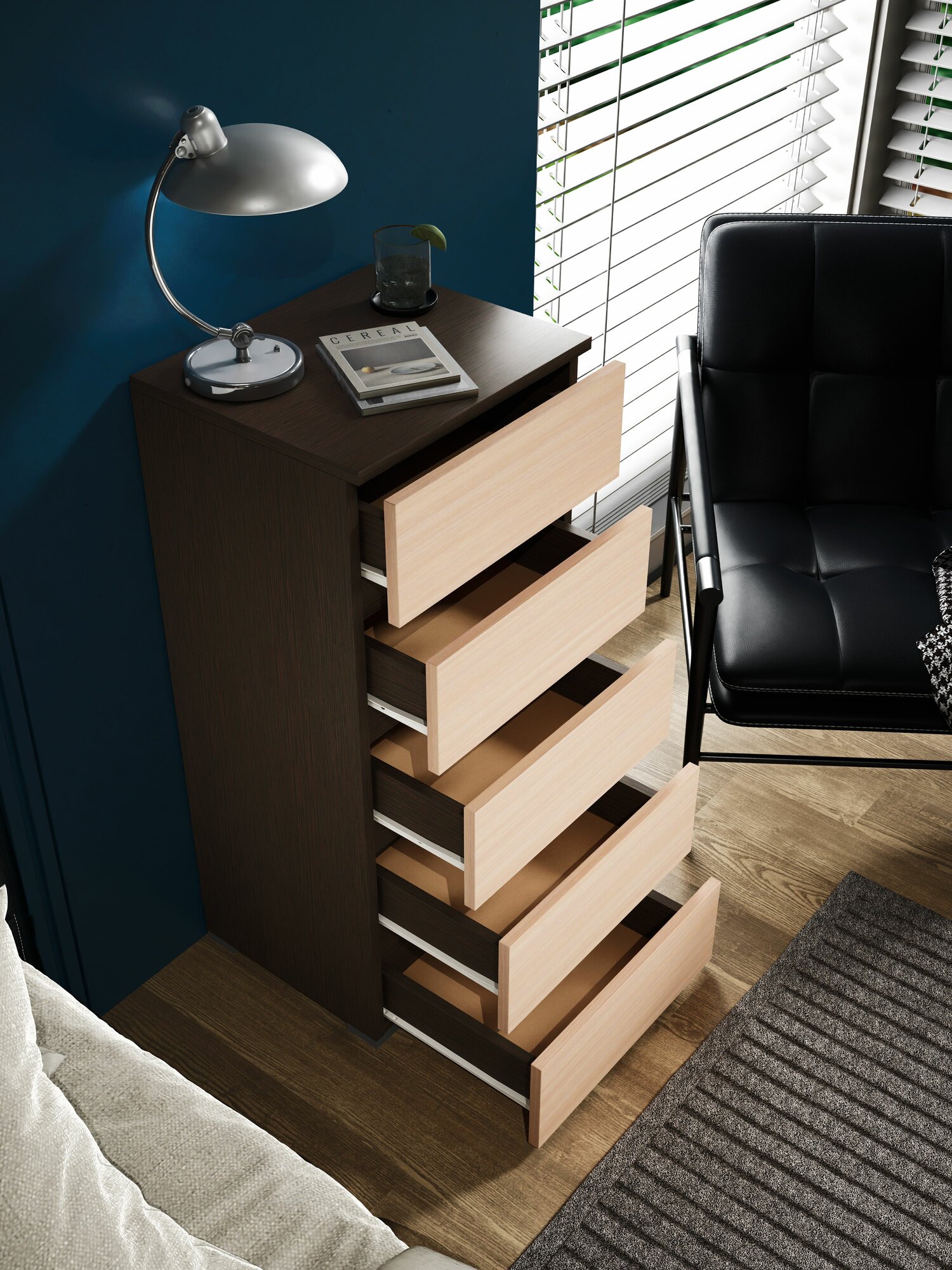Комод Профимебель «Лион-2», 5 выдвижных ящиков, ЛДСП, венге-дуб молочный, 40,4×86,7×32,4 см: сравнение цен, характеристики, фото, актуальное наличие и цены.