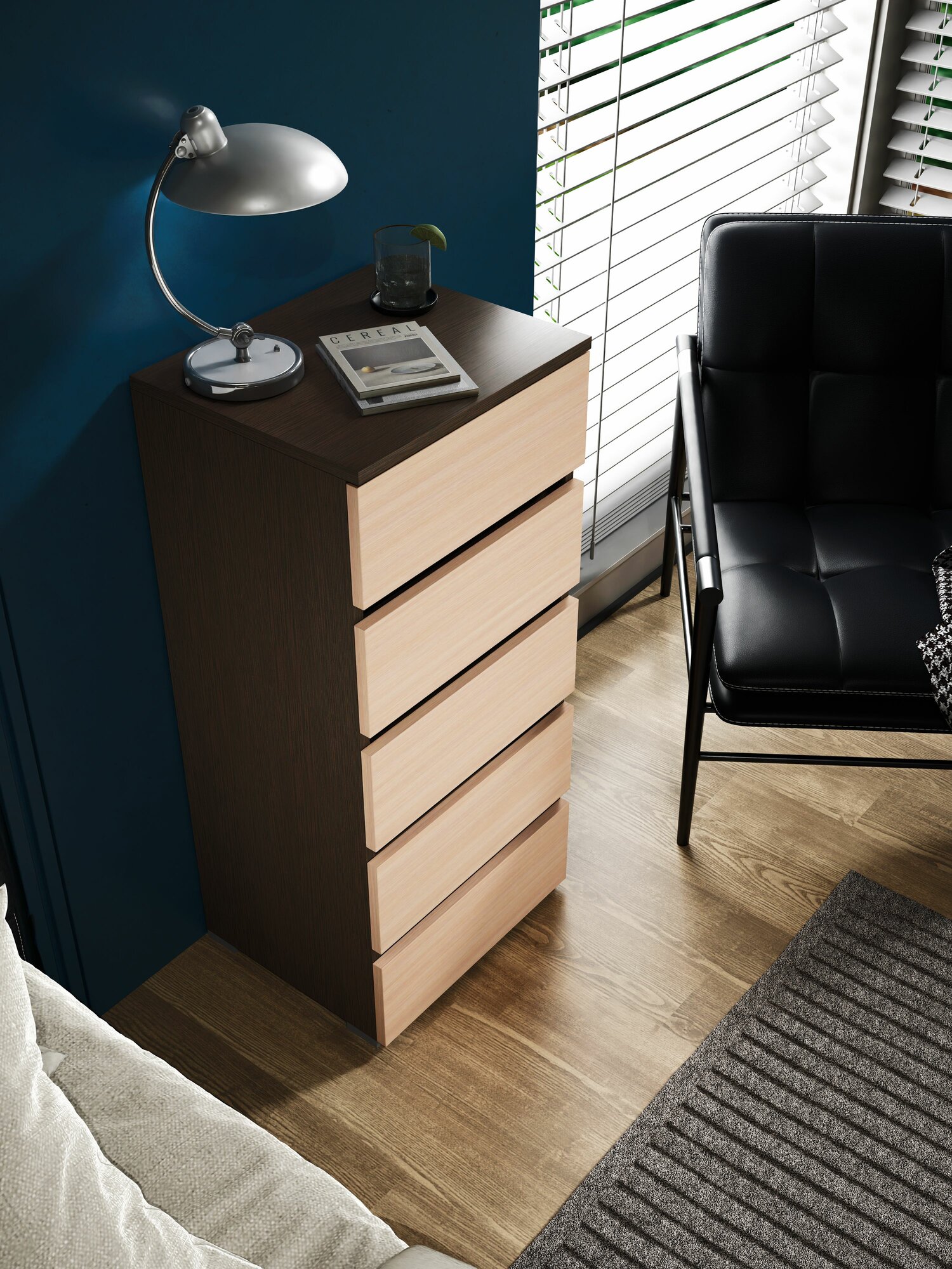 Комод Профимебель "Лион-2", 5 выдвижных ящиков, ЛДСП, венге-дуб молочный, 40,4x86,7x32,4 см